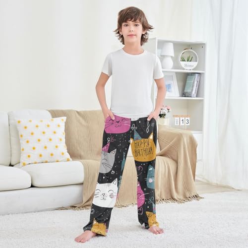 More information about Birthday Cat Boys Long Pants plush Trousers Elastic Waist Kids Lounge Bottoms with Pockets S-XL