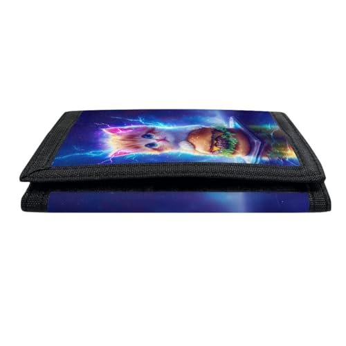 GLUDEAR Kid Wolf Trifold Wallets Outdoor Print Wallet Money Organizer Teens Girl Boy Birthday,Hamburger Cute Cat Lightning