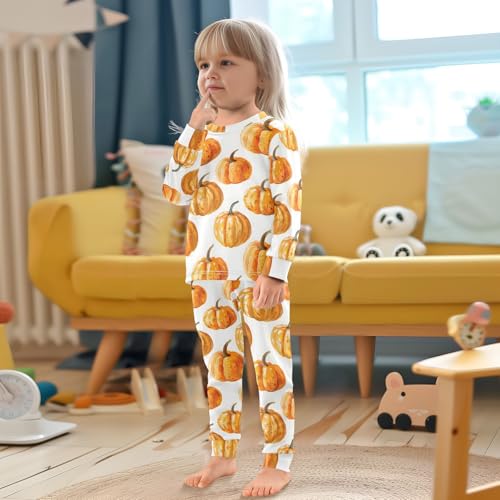 sizzling ! Pajama Sets Long Sleeve Pumpkin Pattern Print on White plush Comfy Sleepwear 2 Piece PJS 3-8T