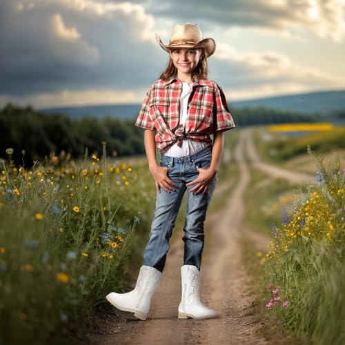 IUV Cowgirl Boots Cowboy Boots For Girls Boys Kids Toddler Fashion Western Boots Mid Calf Riding Shoes