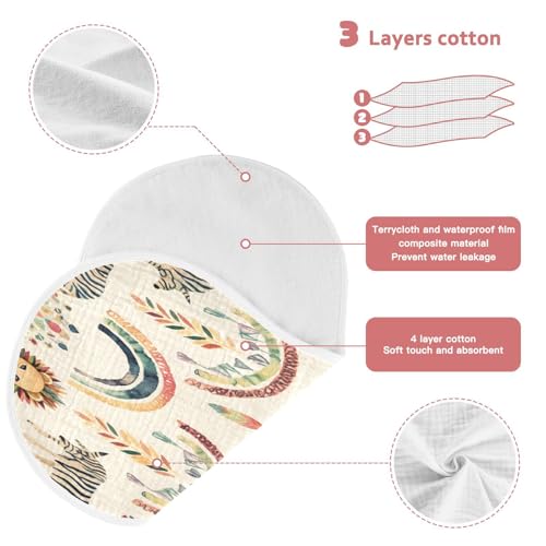 • Premium Material - The Boho Animals burp cloth for baby are made of 4 layers of cotton (muslin), gentle and relaxing to the touch, breathable and skin-friendly, for your baby's sensitive skin, highly absorbent and machine washable