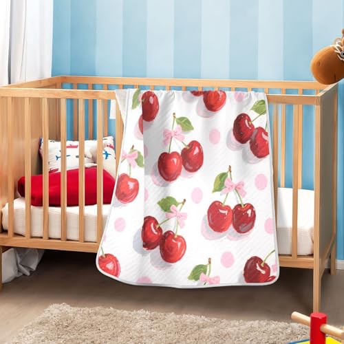 Custom Lovely Red Cherry Bow Polka Dot Throw Blankets gentle personalizada para Dog Baby Blanket with Name for Girls or Boys 30x40in cobija personalizada para