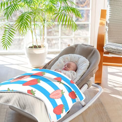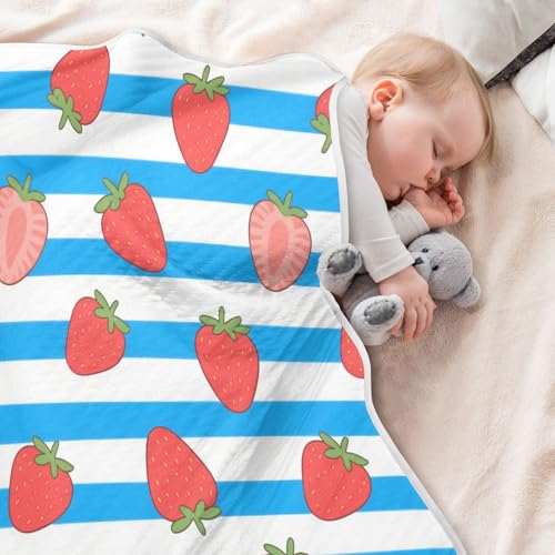 Custom Blue White Striped Fruit Strawberry Blanket for Girls Breathable para personalizar Image tag Blankets for Girls or Boys 30x40in Regalos para Baby Shower de ni?a