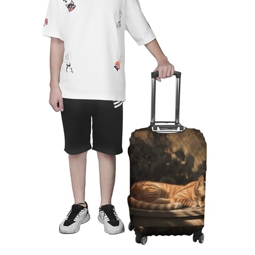 Luggage Covers: Our Orange Cat Sleeping luggage covers protect your luggage from dust and scratches. The modern patterned design also helps you spot your belongings amidst a cluttered luggage.Material: The luggage covers are made of highly stretchy polyester fabric, which is stretchy, durable, and wear-resistant. They're washable and easy to care for.Easy to Install and Remove: The top features two openings for the telescopic handle and carry handle, and zippers on both sides. The unique design makes it easy to install and remove.Size : 4 sizes available to fit almost any luggage. SIZE S: fit 19-21 inch luggage; SIZE M: fit 22-24 inch luggage; SIZE L: fit 26-28 inch luggage; SIZE XL: fit 30-32 inch luggage.Note: 1. We only sell luggage covers; we don't sell regular suitcases. 2. The height of the luggage cover does not include the wheels, and the width does not include the handles. We recommend measuring your luggage at the maximum of this size and ordering the next size up. Perfect for everyday use. premium materials and excellent craftsmanship ensure long-lasting durability.