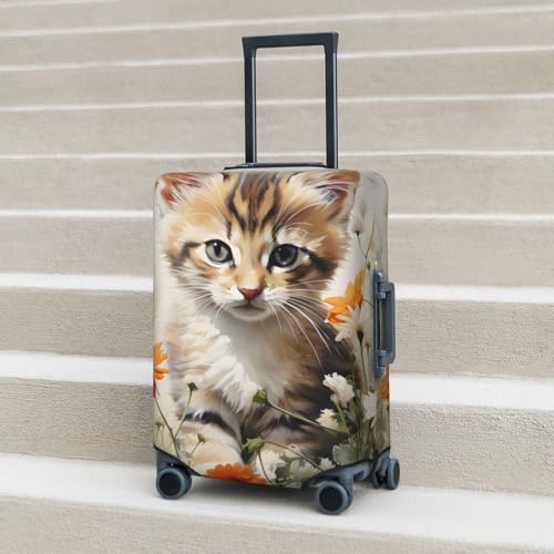 sizzling ! Cute Cat Daisy Travel Luggage Cover for Suitcase Anti-Scratch Fashion Suitcase Protector Washable Elastic Baggage Covers Fits 22-24 Inch Luggage for Travel Beach Holiday