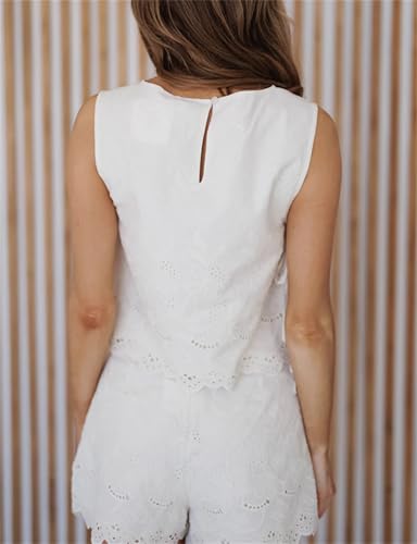 Yuemengxuan Women Tie Side Tank Top Shorts 2 Piece Outfits Set Sleeveless Floral Embroidered Crop Cami Top Shorts Pajamas Set