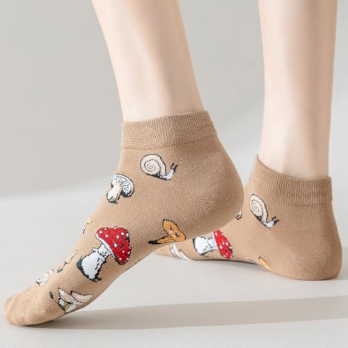 Why Choose 5 Pairs Cute Cartoon Animals Print Cotton Ankle Socks for Women Teens (US, Alpha, One Size, Regular, Regular, Mushroom)?