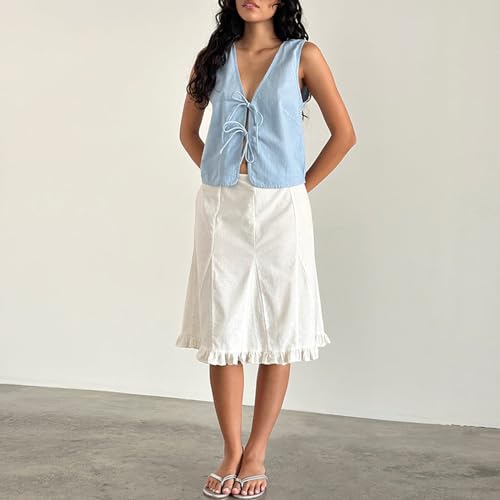 • Features: Y2k vest going out tops, sleeveless crop tops for women, solid color, tie front crop top, loose fit bow tie up tops for women.
