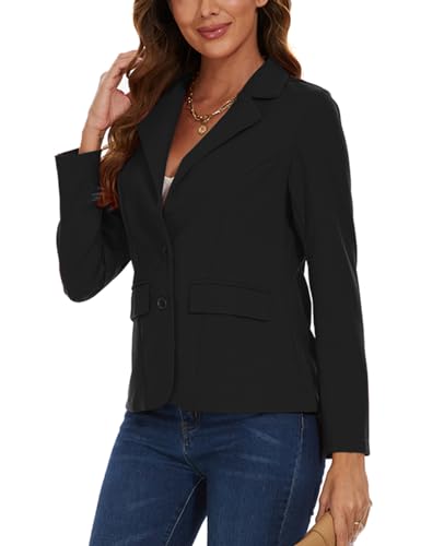 MINTLIMIT Blazers for Women Business Casual Dressy Long Sleeve Notched Lapel Blazer Jackets Stretchy Button Front Blazer with Pockets,Black,M