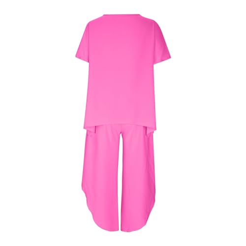 sizzling ! Womens Cotton Linen 2 Piece Sets Short Sleeve Loose High Low T Shirt Wide Leg Capri Pants Suit