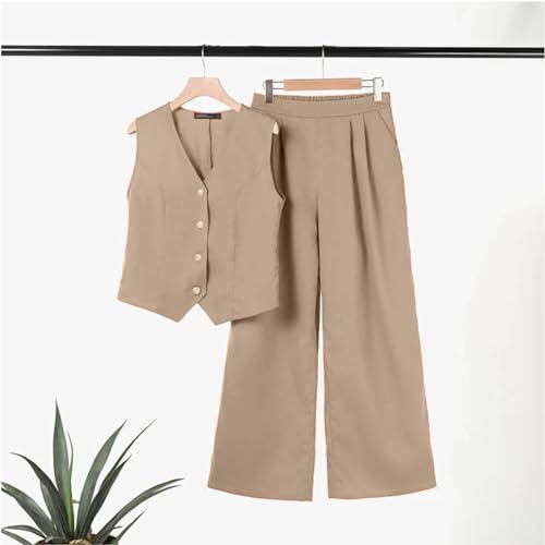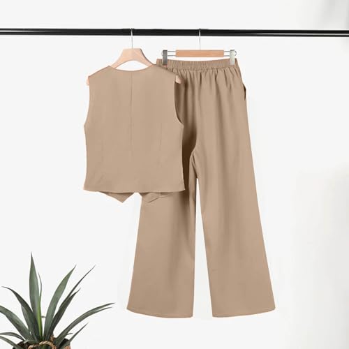sizzling ! HGps8w Women's Summer Cotton Linen 2 Piece Outfits Sleeveless Button V Neck Suit Vest with Wide Leg Pants Business Work Sets