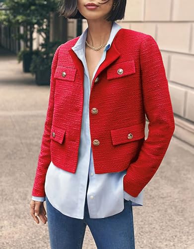 • FEATURES: Cropped blazer jacket, crewneck, collarless, open front, button down closure, long sleeve, 4 fake pockets, cropped length, 2024 newly-released fashion old money clothes for women.