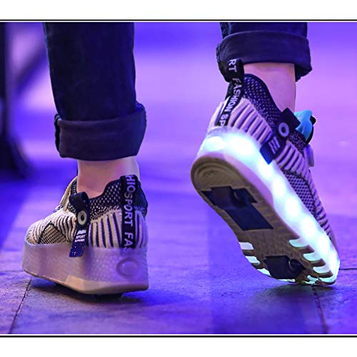 More information about Kids Breathable Mesh Led Light Up Shoes USB Charging Double Wheels Roller Skate Shoes for Boys Girls