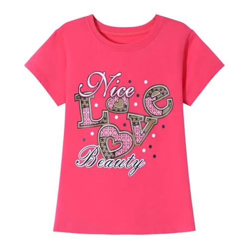 HILEELANG Girl T-Shirts Short Sleeve Graphic Tees Cotton Casual Summer Tops Shirts 3 Packs