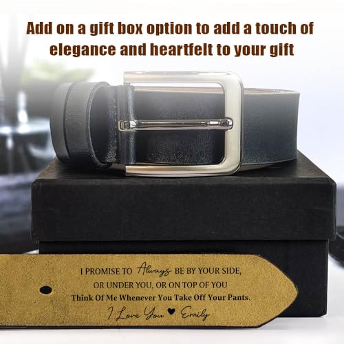 LASFOUR I Promise To forever Be By Your Side Belt, Personalized 2-Sided Engraved Leather Belt for Husband With Saying On The Inside, Custom Name Wide Black/Brown Leather Belt for Men