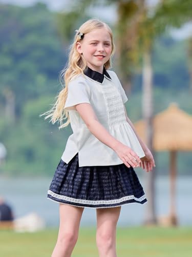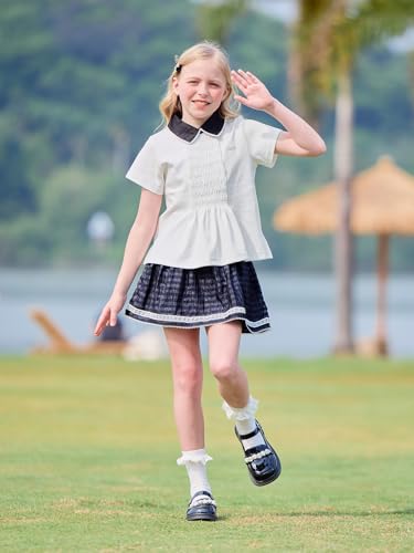 Fabric type: 97.6% cotton, 2.4% spandexCare instructions: Hand Wash OnlyOrigin: ImportedClosure type: Pull Onπ€ Unique Black Peter Pan Collar with Lace Trim Classic meets chic with the soft black collar edged in delicate white lace. A timeless design that adds charm and elegance to your girl's everyday look.π Elegant Silhouette with A-Line Hem, Side Slits & Back Button Designed with a flattering A-line shape, modern side splits for easy layering, and a charming back button with keyhole detail for a touch of vintage style and convenient dressing.πΈ Soft, Breathable Fabric for Summer Comfort Crafted from 97.6% cotton and 2.4% spandex, this girls polo shirt offers a soft, stretchy, and body-flattering fit for active play.π Perfect for School, Uniforms & Everyday Wear Elegant enough for formal settings, yet comfy for casual daysβideal for school uniforms, picture days, birthday parties, or daily outfits.π§ Designed for Girls Ages 6β16 (4'0β5'5) Tailored to fit growing girls, this short-sleeve top offers a stylish and age-appropriate look for kids and tweens from elementary to early teen years. Perfect for everyday use. premium materials and excellent craftsmanship ensure long-lasting durability.