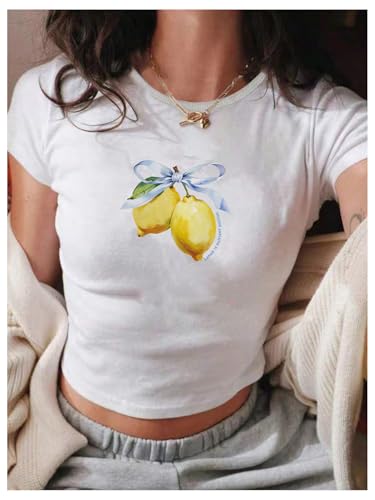 Why Choose SweatyRocks Girl's Lemon Shirts Graphic Print Short Sleeve Crew Neck Fitted Y2K T Shirts?