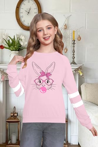 LAZYCHILD Kids Easter Shirt Girls Happy Easter Shirts Rabbit Graphic Long Sleeve Striped Tee Tops 5-14 Years