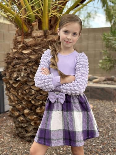 Arshiner Girls Puff Long Sleeve Shirts Ribbed Knit Cute Casual Crewneck Tops Blouse Tee