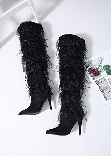 Sole material: LeatherShaft height: 20.87 inchesOuter material: LeatherClosure type: ZipAbout size:the shoes are made by the USA size, so please choose the size you usually wear.Color:red,black,white,you can choose different color depend on the accasions,such as evening party wedding,and so onDecorations:use premium ostrich feather,fixed stable by handmade,much fashion and luxury,others will be jealous of you.Due to the long and thick feather near the zip,when zip it,please be carefully not let the feather inside zip,if stuck by the feather,please pull out the feather and it can zip againSuitable for many accasions:dress,party,wedding,show,evening,you will enjoy wearing them and so perfect as a gift to your lover,friend,family,a cute ,fashion,rare gift.Measure:heel height:11cm,platform height:0.5cm Perfect for everyday use. High quality materials and excellent craftsmanship ensure long-lasting durability.