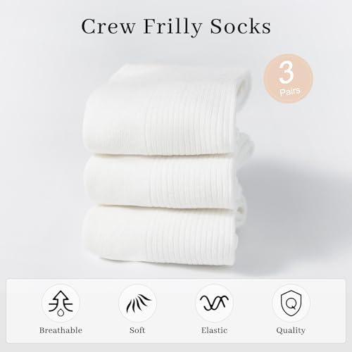 Sunm Boutique Ruffle Socks Woman, White Cute Womens Crew Frilly Socks Cotton Ankle Breathable Size 5-9
