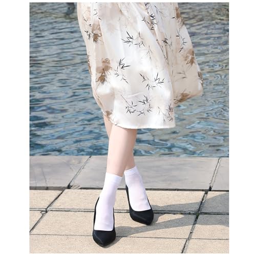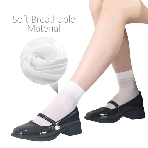 Fabric type: PolyesterCare instructions: Machine WashOrigin: ImportedPattern: Pure color👍SUPER SOFT & SILKY FABRIC: Transparent women's nylon sheer socks are made of premium nylon material, which is cushy, breathable, lightweight and durable. The excellent moisture wicking function provides your feet with all-day comfort and freedom.👍EXCELLENT WORKMANSHIP: Our nylon socks are reinforced at the toe to ensure maximum comfort, so you don't have to worry about holes. Highly elastic socks fit your feet perfectly and won't fall off or get too tight easily. Strict and exquisite production process makes the socks more smooth and transparent.👍ONE SIZE: These ultra-thin stockings are standard US sizes and fit most women's shoes size 6-11. The nylon sheer socks come in small individual package for easy removal. Each pack of 10 pairs of elegant stockings makes a perfect gift for your lover, mother, sister and friends.👍BASIC COLORS: White and Nude Black, can be worn with most women's shoes, an alternative to invisible no-show nylon sheer socks. Solid color stockings make women or teenage girls look very fashionable and elegant.👍USE OCCASION: Women's ankle see-through socks can be easily matched with different styles of skirts, pants and shoes, such as sandals, boots, loafers, high heels and so on. Make your feet look elegant and comfortable at the same time. Perfect for everyday use. High quality materials and excellent craftsmanship ensure long-lasting durability.