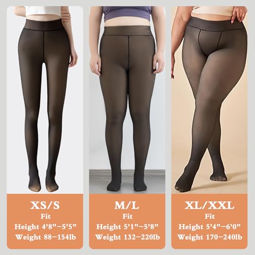 Fabric type: 80% Polyester, 20% SpandexCare instructions: Hand Wash OnlyOrigin: Importedđ„ăSOFT WARM FLEECE LINED FABRICăWarm, thick and soft women's sheer leggings, upgraded fleece lining, comfortable, breathable and skin-friendly, keeping you super warm in cold weather, making you like a second skin Just as snug. The high-quality fabric is also durable and long-lasting, and the moderate thickness prevents bulk, ensuring you can wear these leggings for many seasons.đ„ăTHREE SIZE FIT MOST WOMENăSuper elastic women's fleece lined tights, suitable for different sizes and body shapes, without restricting movement after wearing, making it comfortable to wear. XS/S(Fit Heige 4'8-5'5,Weight 88-154lb), M/L(Fit Heige 5'1-5'8,Weight 132-220lb), XL/XXL(Fit Heige 5'4-6'0,Weight 170-240lb)đ„ăPLUS THICKENED, WARM WINTERă: Our thermal leggings are made from comfortable and warm materials, 220g thick fleece lined leggings including 80% polyester, 20% elastic Fibers and wool, these high-quality leggings are woven with 1200N technology to be smooth, warm and not prone to pilling. Whether you're going to work, party, school, or just wearing them for everyday activities, these women's Winter fleece lined leggings are a must-have wardrobe piece you'll never regret getting.đ„ăFAKE TRANSLUCENT DESIGNă: Fake translucent tights look like a transparent stocking from the outside, but are filled with warm wool on the inside. It not only keeps you warm in the cold season, but also shows off your sexy figure. Available in pantyhose and stirrup styles, these wool tights come in classic, versatile colors like black, gray and brown, making them easy to match with any outfit.đ„ăHIGH WAIST & BUTT LIFTINGă: The winter warm leggings have a 6cm wide elastic high waist band that covers the belly button, provides extra compression to the abdomen, cleverly hides excess fat and shapes the waist contour. The exclusive double-line hip design enhances and enhances the hip curve, creating a sexy and charming figure. Perfect for everyday use. excellent materials and excellent craftsmanship ensure long-lasting durability.