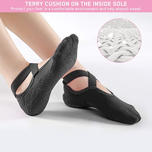 • 【CROSS STRAP DESIGN】- Instep ballet-style cross strap design, elegant and chic, help to keep the pilates socks in place and prevent them from sliding around on your feet while in use, let you exercise without burden, add the sense of fashion to your workout.