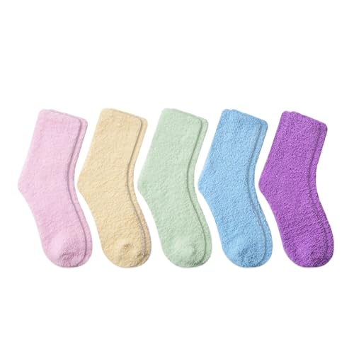 Origin: ImportedPattern: SolidULTRA-plush FUZZY SOCKS FOR WOMEN:Crafted from premium microfiber blend and cozy coral fleece inner lining, these fuzzy socks women love deliver exceptional warmth with breathable comfort. Perfect as winter fuzzy socks or plush sleeping socks for women seeking cloud-like softness.VERSATILE COLORS:Available in 5 versatile solid colors, they blend seamlessly with any outfit. Our bulk fuzzy socks come in a convenient pack of 5 pairs, offering great value as fuzzy socks bulk for fuzzy socks women or womens fuzzy socks in your collection.YEAR-ROUND VERSATILITY: The versatile plush socks multipack can easily cope with various occasions from cool mornings to bedtime. These fuzzy socks can be paired with jeans, dresses or pajamas. The cozy women's socks can be used as socks at home or as health socks when traveling to promote blood circulation.TRUE ONE-SIZE COMFORT:Designed for US 5-10, these stretchy comfy socks accommodate most feet. Preserve fluffiness by handwashing only (no ironing) – proper care ensures fluffy socks women can enjoy season after season retain vibrant colors.WARMTH GIFTS FOR WOMEN:warm fuzzy socks for women make excellent stocking stuffers or bulk holiday gifts. These fuzzy Christmas socks are perfect sleep socks for women, spa gifts, coworker presents,white elephant gift, birthday gift, mother's day gift, christmas stocking stuffer, valentines day gift or halloween gift. Cozy socks for women arrive ready to delight any occasion! Perfect for everyday use. excellent materials and excellent craftsmanship ensure long-lasting durability.