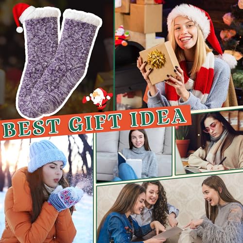 SeeyAN Slipper Fuzzy Socks For Womens thermal Winter Thick Fleece Lined Thermal Fluffy Non Slip Cozy Cabin gentle Socks With Grips