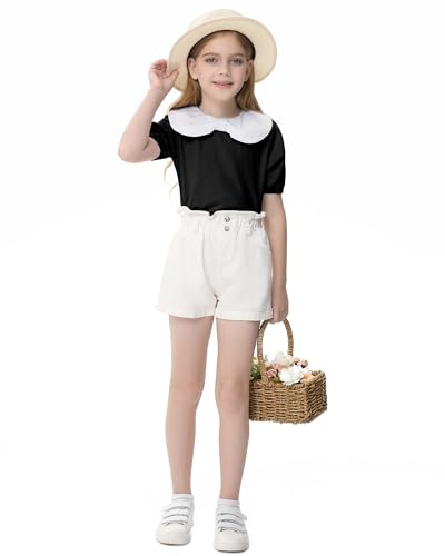 • Features: Round neck with bow peter pan design; puff short sleeve;solid color;casual,enduring and fashion for girls wear matched with shorts,long pants,denim,jeans,dress or skirt.Also superb for all seasons wearing.