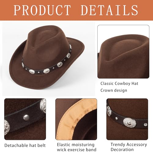 Kids Girls Boys Western Cowboy Cowgirl Hats, Toddler Wide Brim Felt Fedora Hat with Band, Rodeo Panama Cap, 2-6T