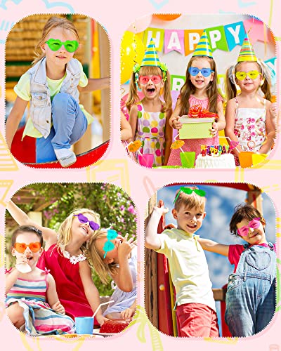 24 Pairs Kids Heart Shaped Sunglasses Rimless Transparent Candy Color Eyewear Vintage Rainbow Sunglasses Bulk Heart Glasses for Age 5-12 Kids Children Girl Boy Birthday Cosplay Party Favor, 24 Colors