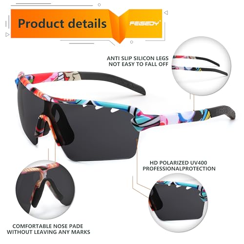 FEISEDY Kids Sunglasses Baseball Cycling Glasses Youth, UV400 Sports Shades Teens Boys Girls B2850