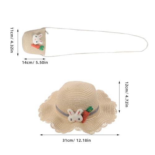 sizzling ! 1 Set Kids Girl Summer Straw Hat Foldable Wide Brim Cap Sun Visor Hats Beach and Cute Straw Purse Woven Crossbody Bag for Kids Travel Outings Beige