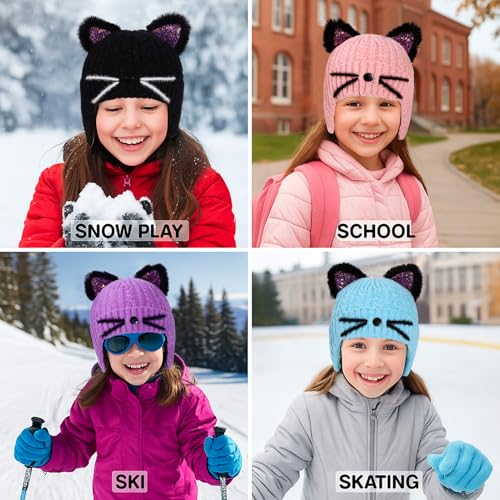 Fabric type: ChenilleOrigin: ImportedClosure type: Pull-On【Girls Earflap Beanie Hats】:The kids beanie hat is made of chenille,soft lightweight,cozy and warm,safe and healthy,skin-friendly, durable and good elasticity;Different from most winter warm hats,our beanie hats come with ear flaps that completely covers your ears to provide extra protection against the cold weather,and you don't need to buy any ear protection products.【Two Size Available】:This kids winter beanie has 2 sizes to fit little girls aged 3-7 years,big girls aged 7-14 years respectively,which meet the needs of your kids at different stages of growth;Kids warm earflap beanie has good elasticity and fits different children's head sizes without causing any pressure on the child's head;And it's durable and not easy to deform through washing in cold water and hanging to dry.【Sequin Cat Ears Design】:This knit hat with adorable sequin faux fur cat ear shape design, looks lively and cute, suitable for most hair types, such as long hair, short hair, curly hair, straight hair etc, Will add to your look!Cat ear design will make you more attractive,making your child look both cute and modern.【Add Fun To Winter】:This Kids winter hat is suitable for both casual wearing in daily life and outdoor sports activities,Such as skiing, jogging,traveling,hiking,photograph and go to school; A necessary winter accessory for active little kids who love playing around outside!【Great Winter Gift for Kids】:Our knit caps are perfect for fall and winter, providing constant warmth to kids' heads,As a good gifts for birthday, Christmas, Halloween,Thanksgiving,New Year or other festivals,best winter gifts for kids that family and friends will love. Perfect for everyday use. supreme materials and excellent craftsmanship ensure long-lasting durability.