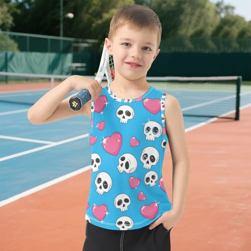 J JOYSAY Skull Heart Blue Boys Tank Top Sleeveless Muscle Shirts speedy Dry Sport Workout Active Kids T-Shirts 3-15T
