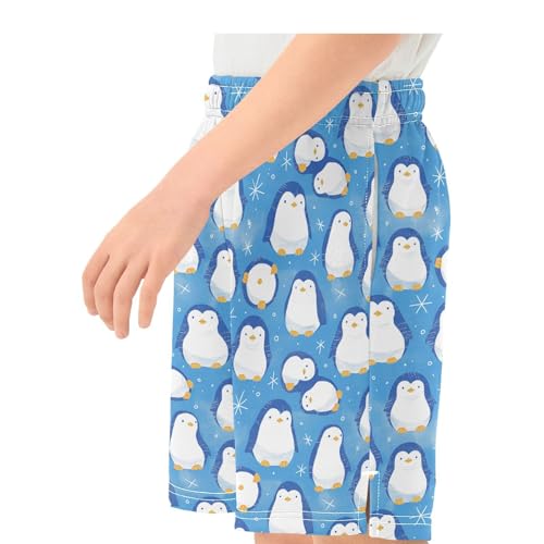 Boys Athletic Shorts with Pockets Cute Blue Penguin Running Basketball Shorts for Youth Elastic Waist Size 7-8