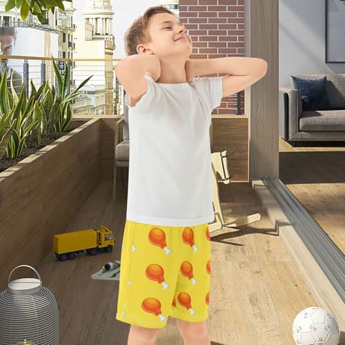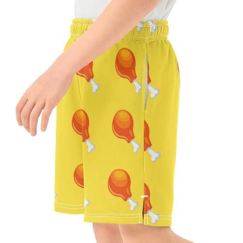 J JOYSAY Cartoon Chicken Leg Yellow Boys Athletic Shorts Kids Youth Casual Shotrs with Elastic Waistband Pockets