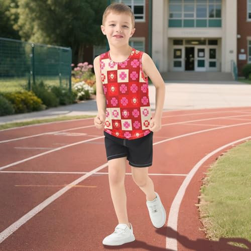 J JOYSAY Skull Flower Grid Crimson Boys Tank Top Sleeveless Muscle Shirts speedy Dry Kids T-Shirts 3-15T