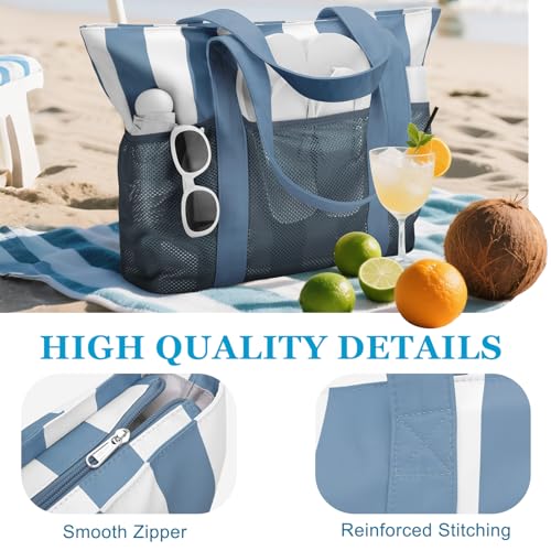 • Cute Striped Design & Water-Resistant Fabric – This supple beach tote bag features a fashionable striped pattern that’s perfect for summer fashion. Made from durable water-resistant polyester that’s also sandproof, it’s your go-to companion for pool days, weekend trips, picnics, or casual outings.