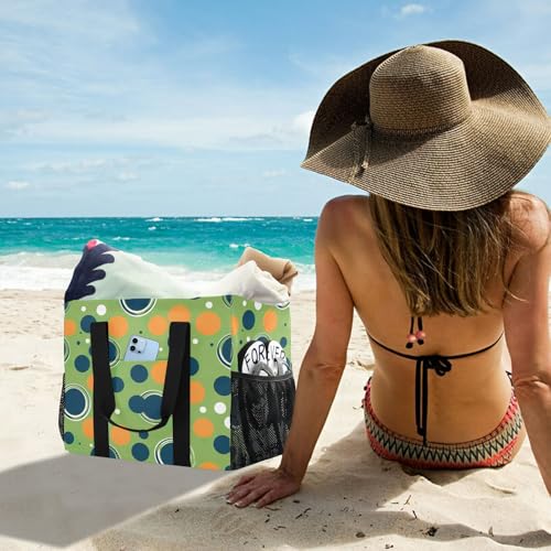 sizzling ! Nander Green Dots Foldable Tote Bag Waterproof Sandproof Women Beach Bag Handbag Gym Bag Travel Shopping Bag