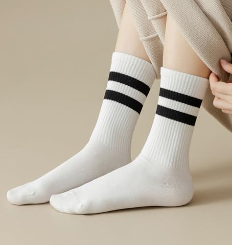 • FEATURES---Calf-high Rise, plush Fit, These iconic Sporty Crew Socks Featured in a Ribbed Design with Striped Details at the Ankle, Perfect to Pair with all Your Favorite Shoes.