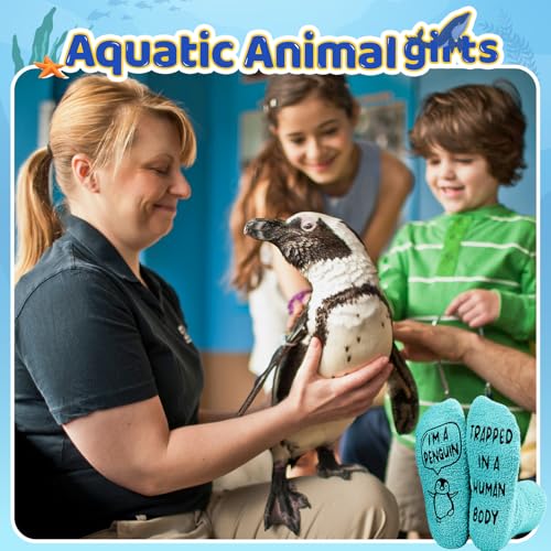 HAPPYPOP Penguin Gifts for Women Men - Fuzzy Green Socks Animal Gifts Teens, Funny Penguin Socks