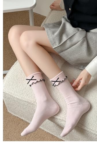 Womens Ruffle Frilly Socks Cuff Cotton Candy Color Crew Socks Dress Socks