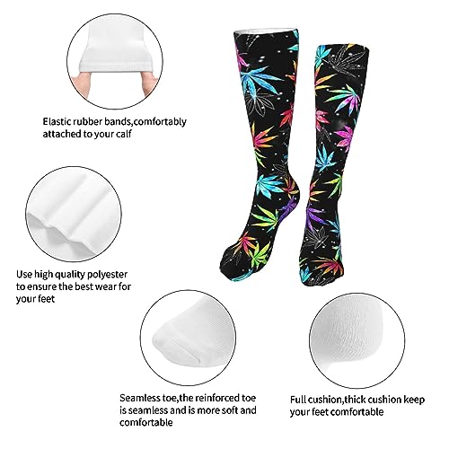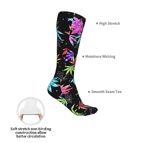 Cannabis Leaf Print Compression Socks For Women Men Long comfortable Knee High Thick Socks For Running Athletic Nurse 20in