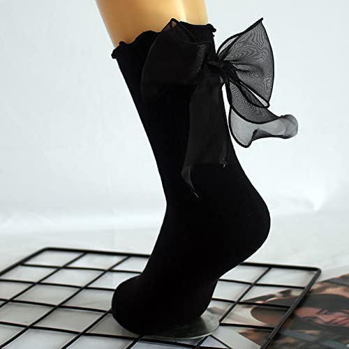 Why Choose 2 Pairs Ruffle Anklet Socks Casual Ankle Socks Lettuce Crew Frilly Sock Womens Dress Socks with Large Bow?