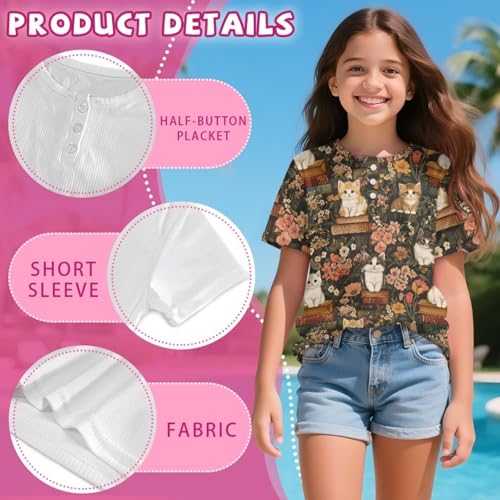 More information about Girls Button Henley Shirts 2-16 Years Kids Summer Short Sleeve T-Shirts Casual Outdoor Back to School Outfits