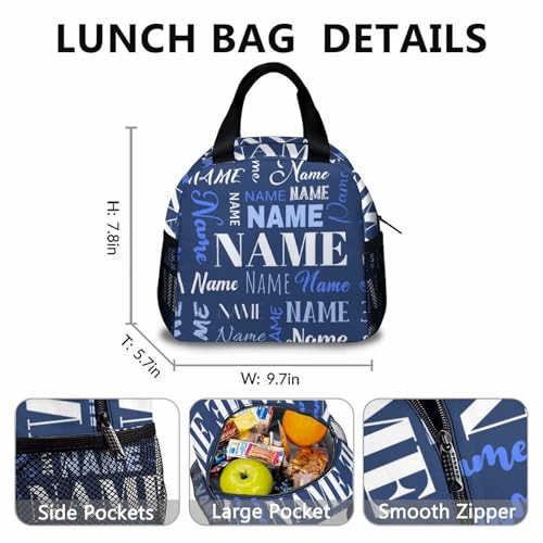 sizzling ! Custom Backpack with Lunch Box Pencil Case with Name, Personalized Kids School Backpack for Boys Girls, Dark Blue 17 Inch Customized Large Capacity Bookbag for Students Children