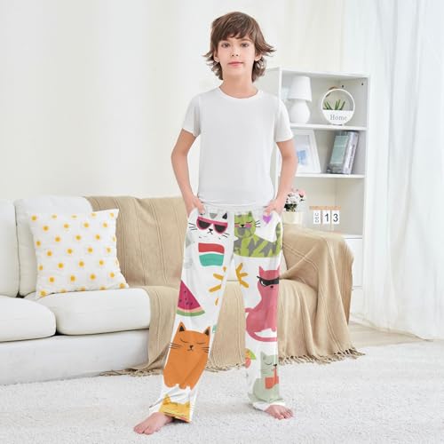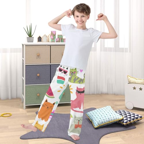 Cat Watermelon Boys Long Pants gentle Trousers Elastic Waist Kids Lounge Bottoms with Pockets S-XL
